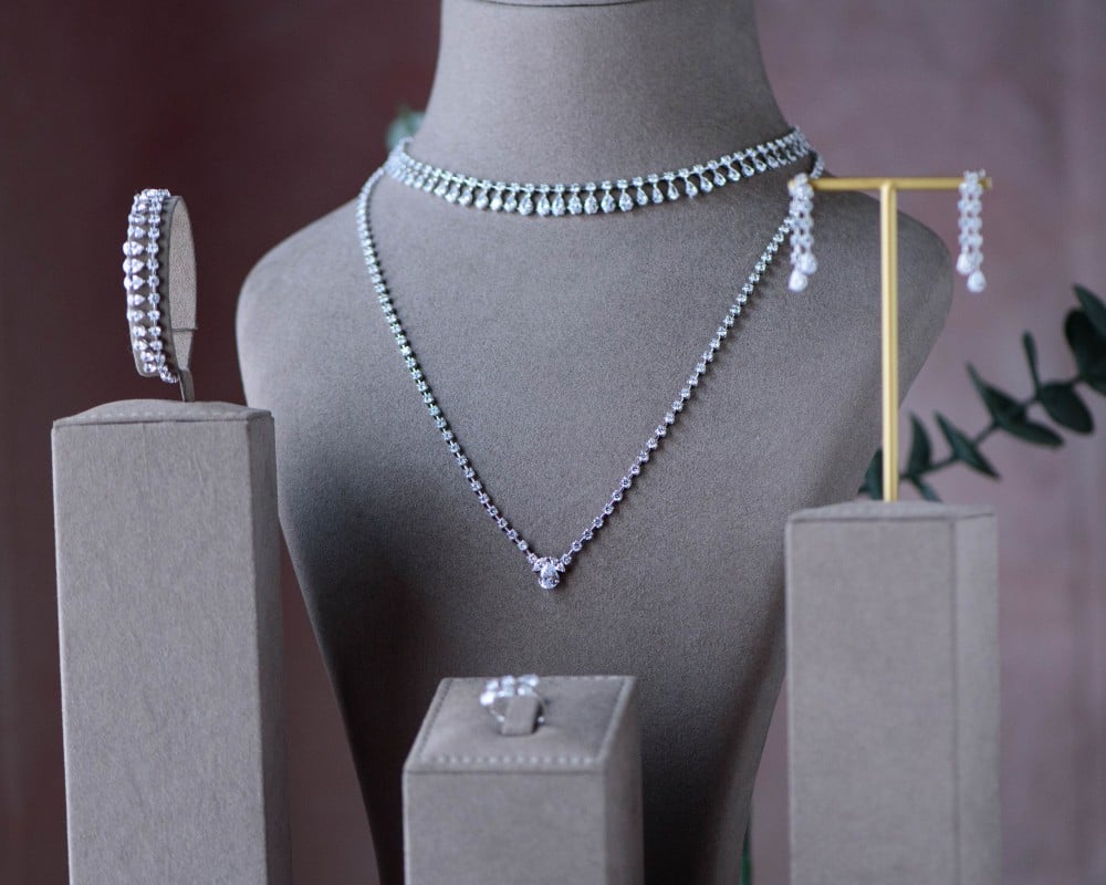 طقم تنس ذهب أبيض عيار 18 بتصميم الألماس