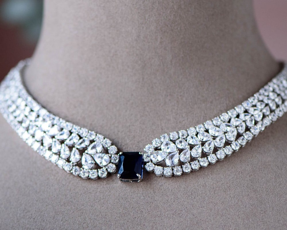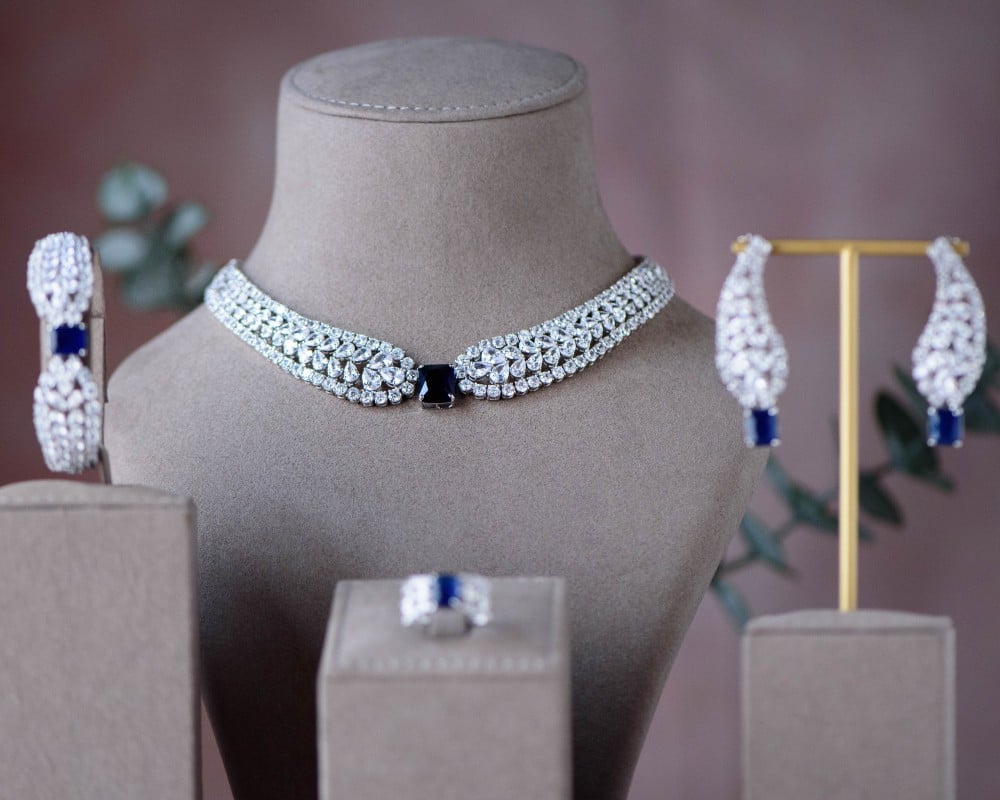 طقم ملكي ذهب أبيض عيار 18 بتصميم الألماس