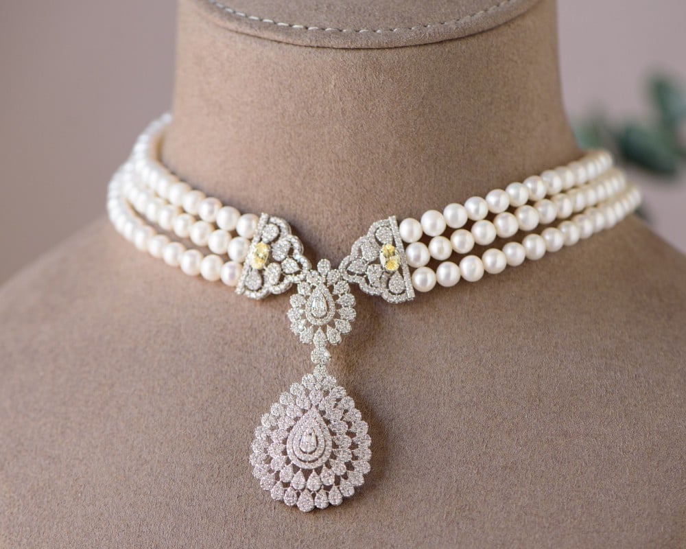 نصف طقم ذهب أبيض عيار 18 مع تشوكر لولو