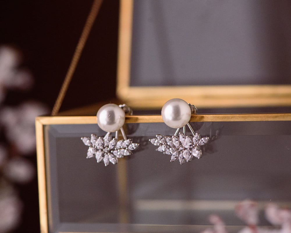حلق ذهب أبيض دورين مع اللؤلؤ
