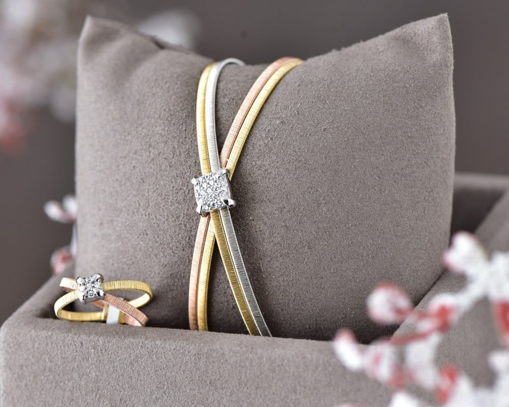 طقم سوارة مع خاتم إيطالي ذهب عيار 18