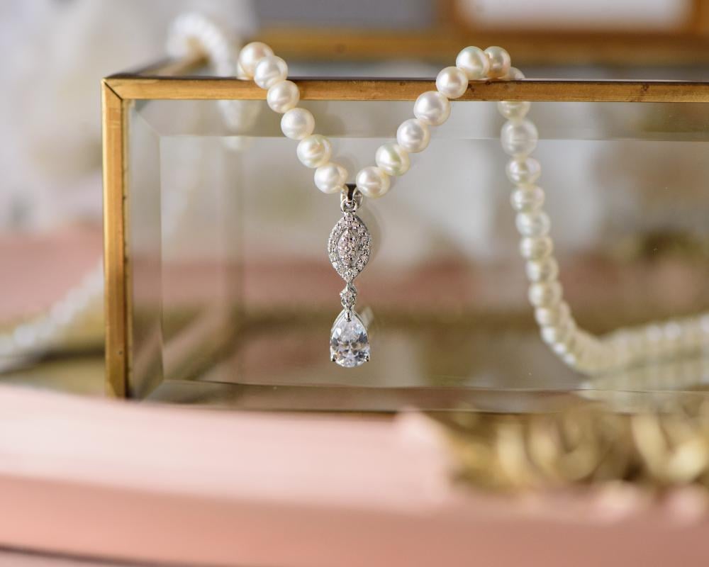 تعليقة ذهب أبيض عيار 18 مع عقد لولو