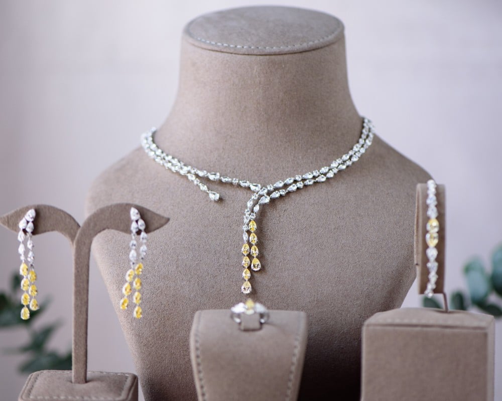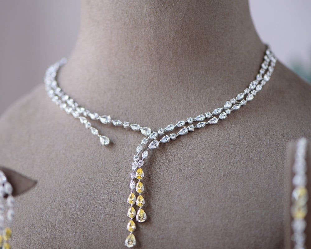 طقم ذهب أبيض عيار 18 تصميم ألماس