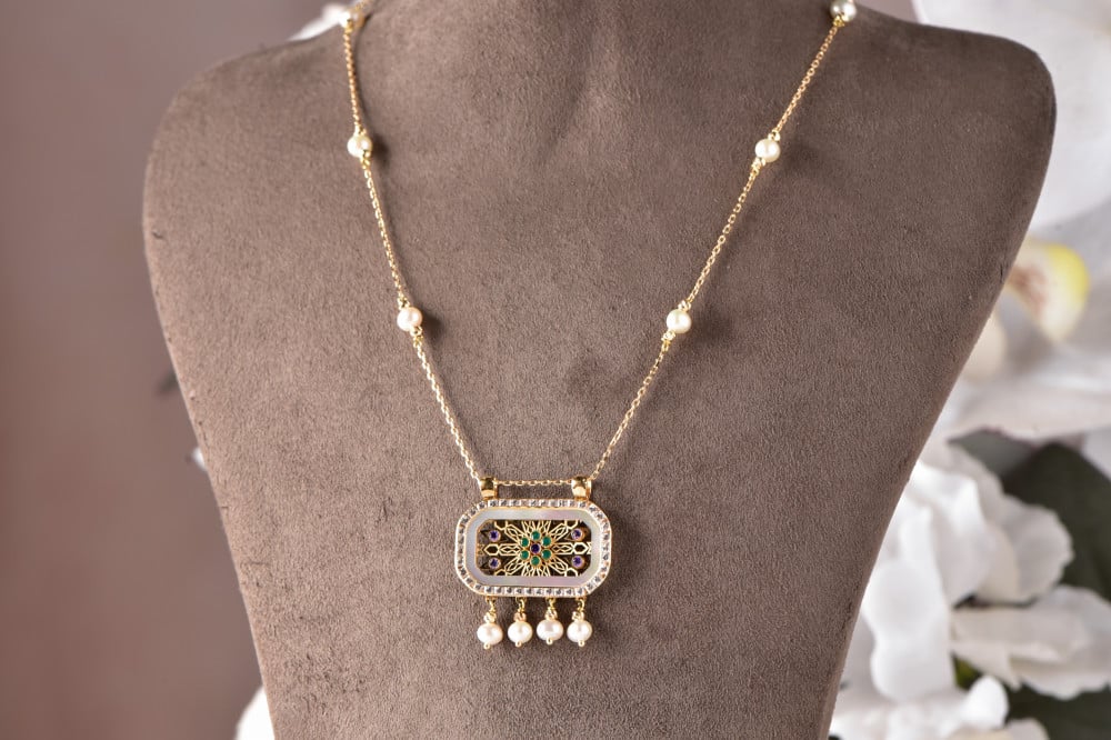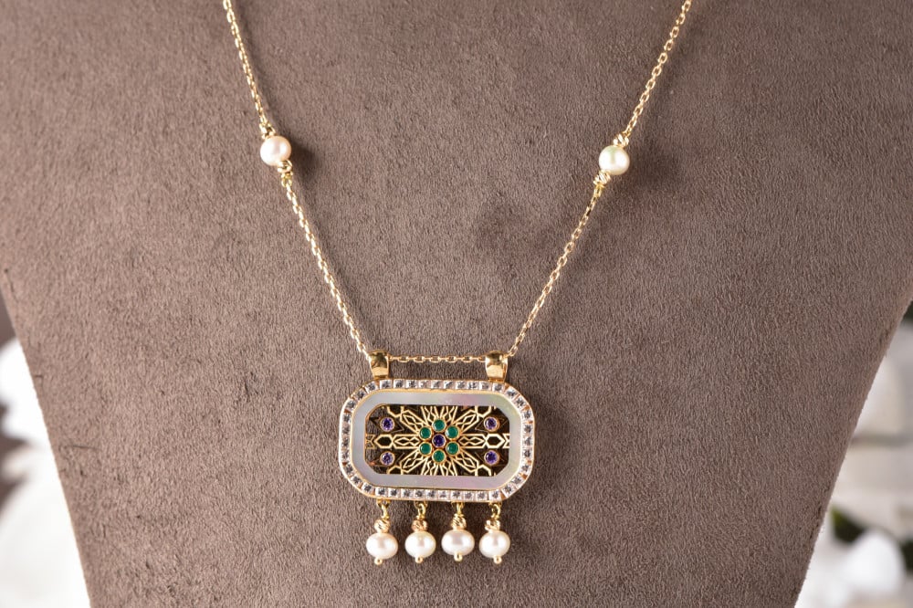 عقد ذهب مطعم بالصدف واللؤلؤ