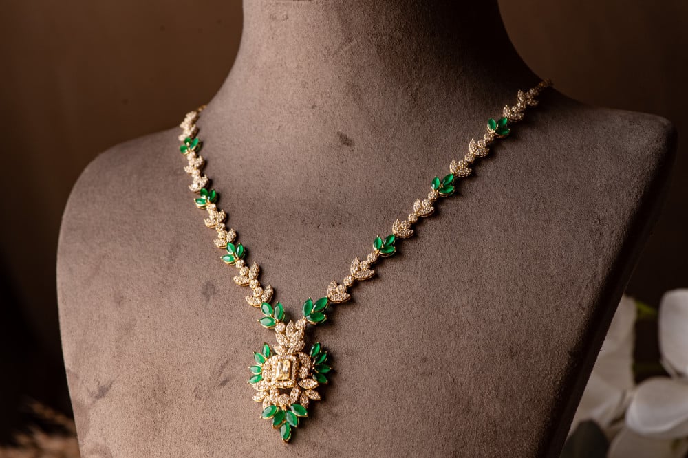 استمتعي بلمسةٍ من السحر والأناقة مع عقد ماركيز الملكي، الذي يأتي بتصميم استثنائي يجمعُ بين الفخامة والجمال، هذا العِقد يتميز بطوله الفاخر وأحجاره الخضراء الخلابة، مما يجعله حِليَةً لا يمكن غضُّ الطرف عنها، كما يسطع عقد ماركيز الملكي بتفاصيل رفيعة تضفي عليه لمسةً من السحر والجاذبية، فطول العِقد ولونه المدهش يجعلانه قطعة مميزة تتناسب مع مُختلَف الإطلالات والمناسبات.