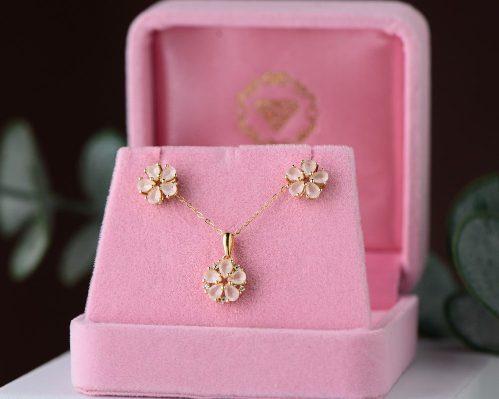 طقم أطفال ذهب عيار 18 (حلق وعقد)