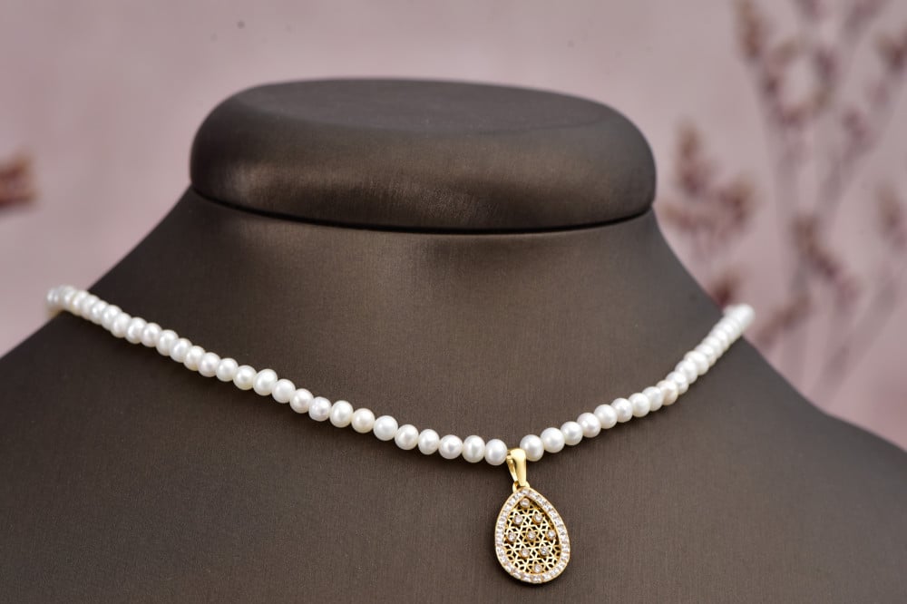 تعليقة ذهب عيار 18 مع عقد لولو مستزرع.