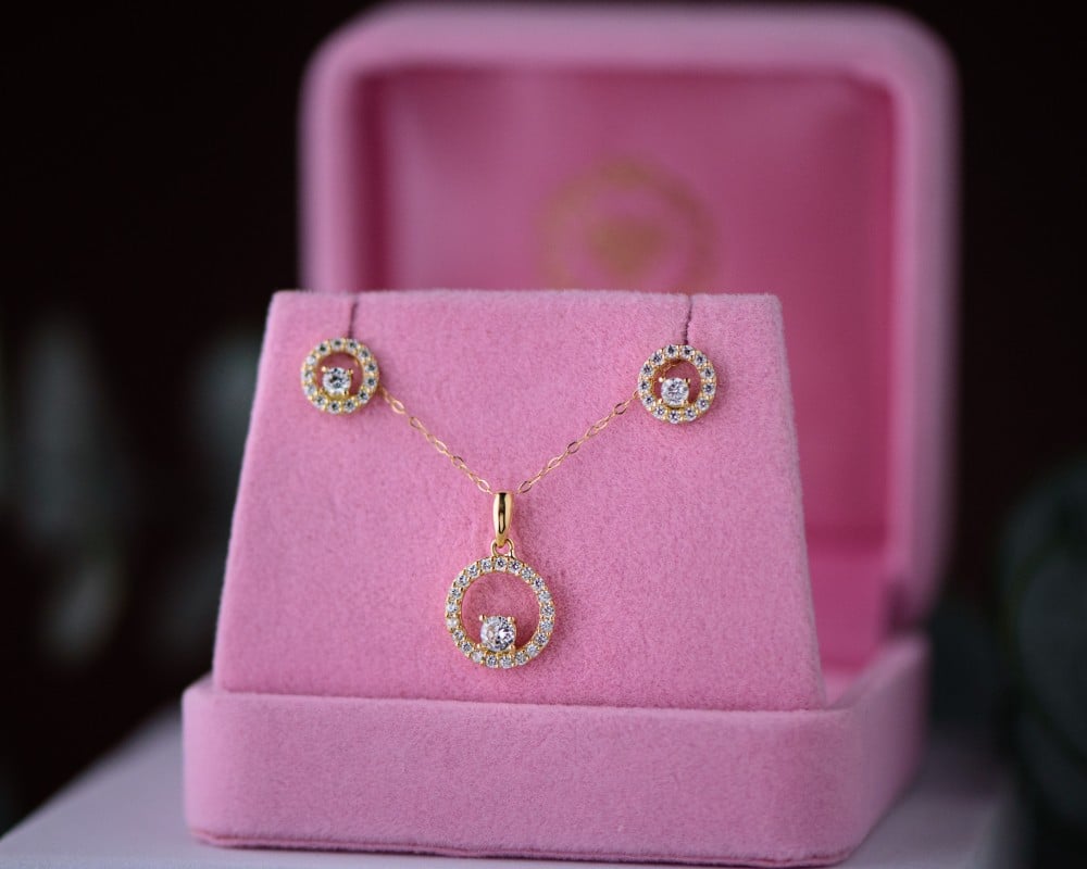 طقم أطفال ذهب عيار 18 (حلق وعقد)