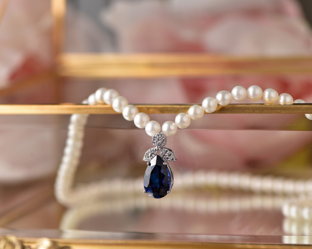 تعليقة فاخرة من الذهب الأبيض مع اللؤلؤ والأحجار الفاخرة