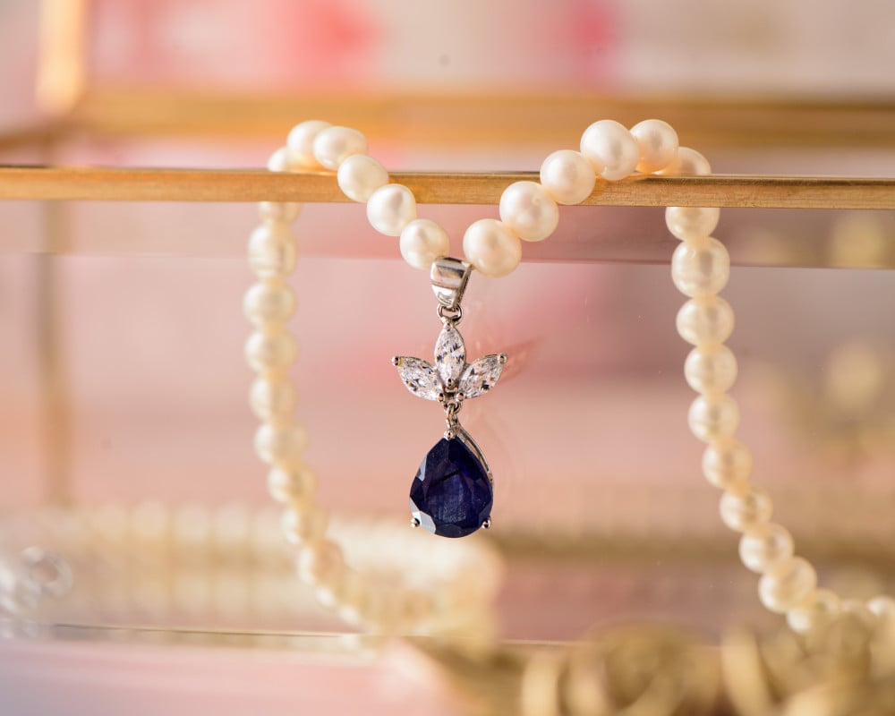 تعليقة ذهب أبيض عيار 18 مع عقد لولو
