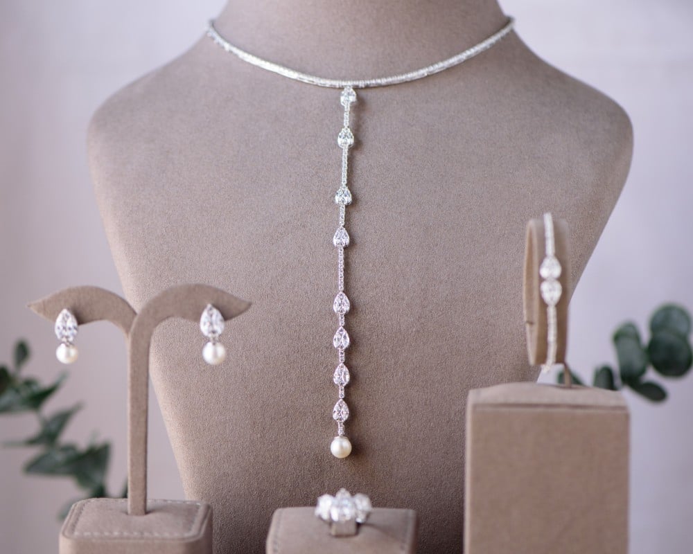 طقم ذهب أبيض عيار 18 تصميم ألماس